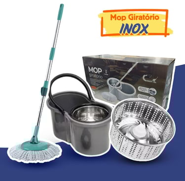 Mop Com Centrifuga Inox e Cabo em Inox Com Refil de Microfibra 9 Litros Mopi