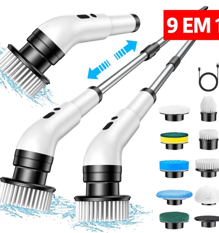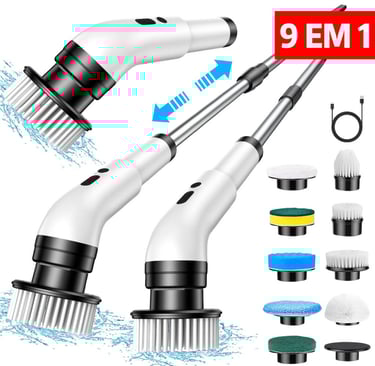Escova De Limpeza elétrico Ajustável Janela Banheiro e Cozinha 9 em 1 Recarregável, Esfregão 3 em 1