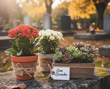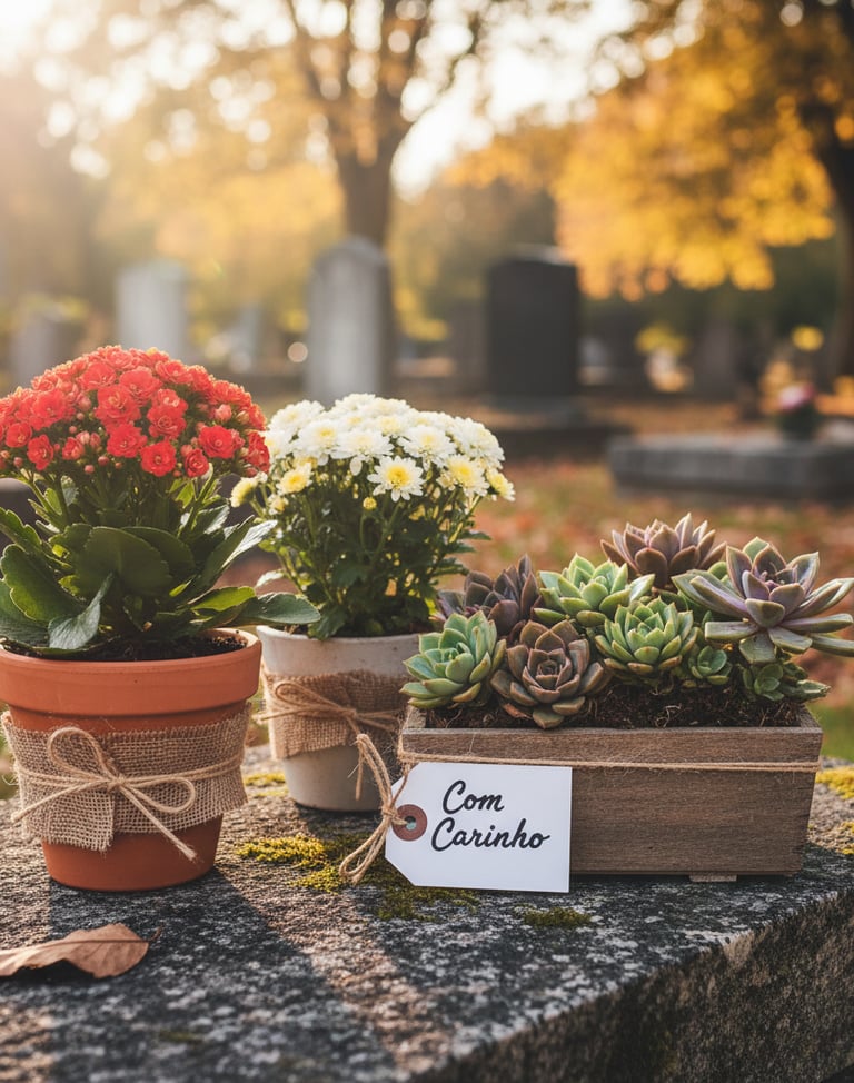 Neste Dia de Finados, lembre-se que a homenagem mais sincera é aquela que vem do coração. O tempo que você dedica para montar um arranjo simples ou para escolher um vasinho singelo é, em si, um ato de amor e memória.